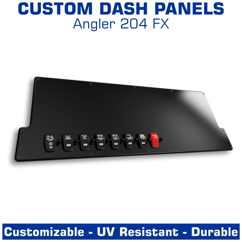 Replacement center console dash & switch panel.The Angler 204FX console consists of a 2-part dash & switch panel setup. There is a Dash panel and a Switch panel. This listing is for ablankDash panel or a blankSwitch panel or a pre-designed Dash panel or a