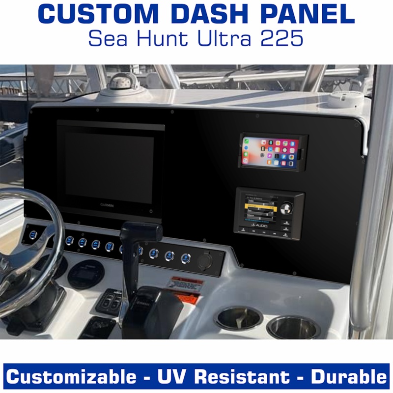 Replacement center console dash & switch panels (two parts).TheSea Hunt Ultra 225 consoleconsists of a 2-part panel setup. There is a dash panel and a switch panel. This listing is for ablankdash panel, and a blank switch panel or apre-designedswitch panel