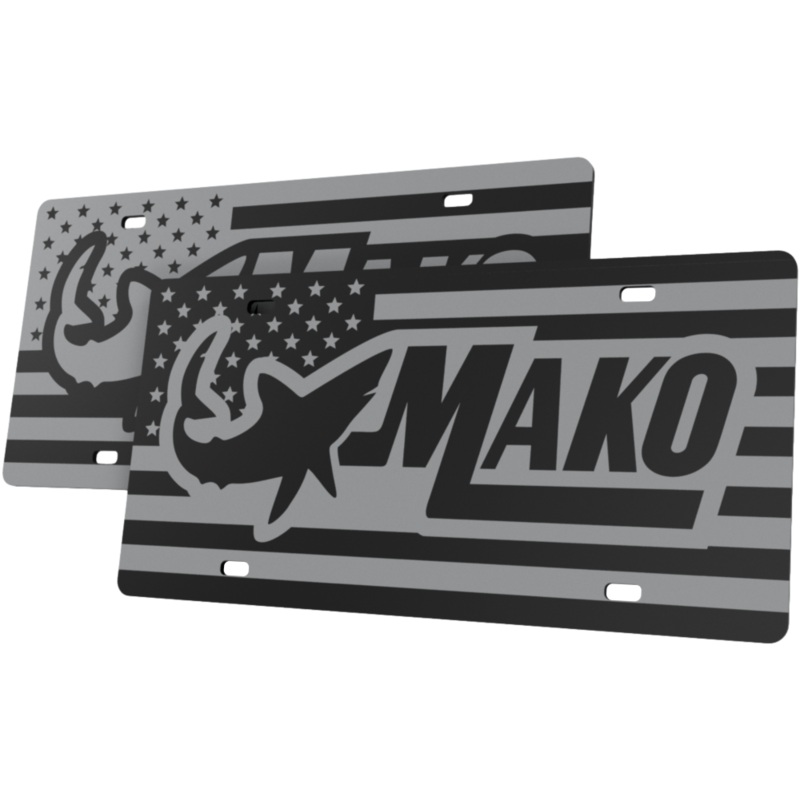 Will look incredibly great on your vehicle and boat trailer!This extremely high gloss black acrylic license plate is 1/8" thick and boasts a beautiful American Flag image behind the iconicMako logo.Get yours today!Available with either Glossy Makotext or M
