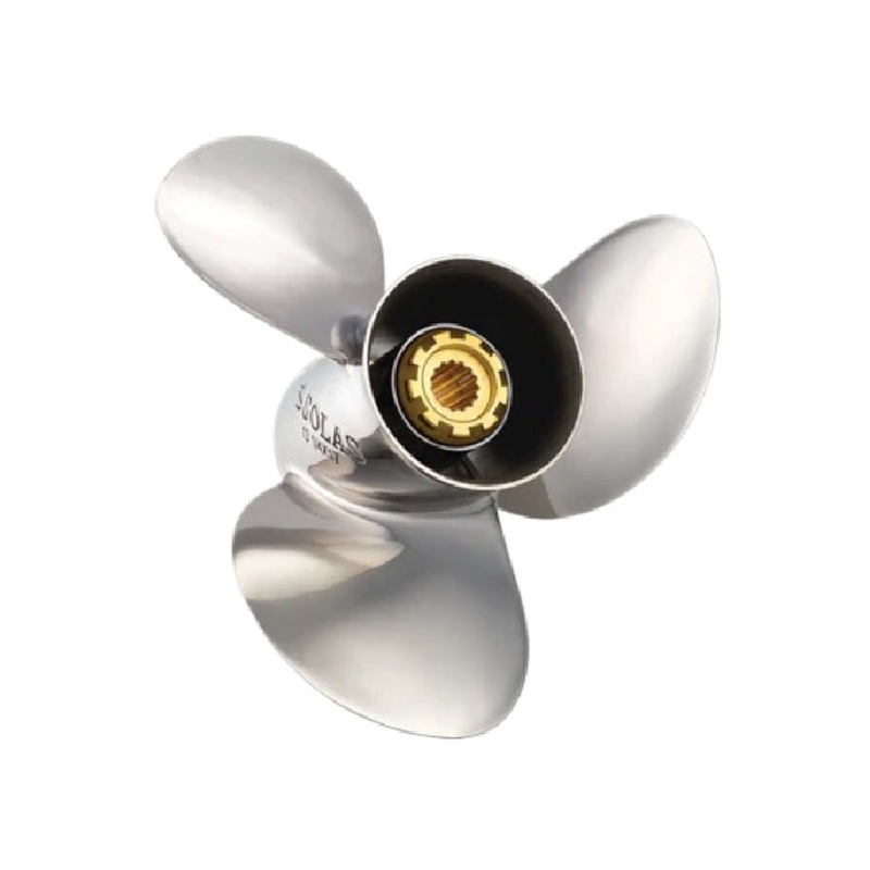 New Solas Saturn 3 Blade Stainless Steel Propeller for 40-140 HP 4 Stroke, Large 4 1/4″ Gearcase Hub, 13 Tooth Thru Hub Exhaust.
