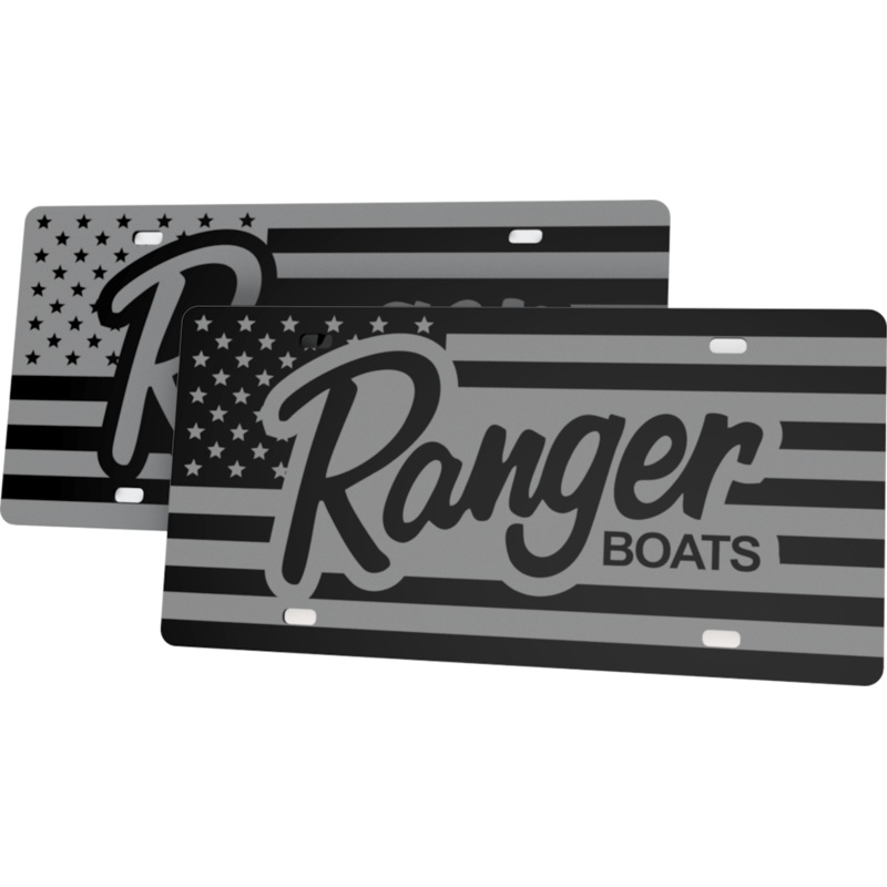 Will look incredibly great on your vehicle and boat trailer!This extremely high gloss black acrylic license plate is 1/8" thick and boasts a beautiful American Flag image behind the iconicRanger logo.Get yours today!Available with either GlossyRangertext o
