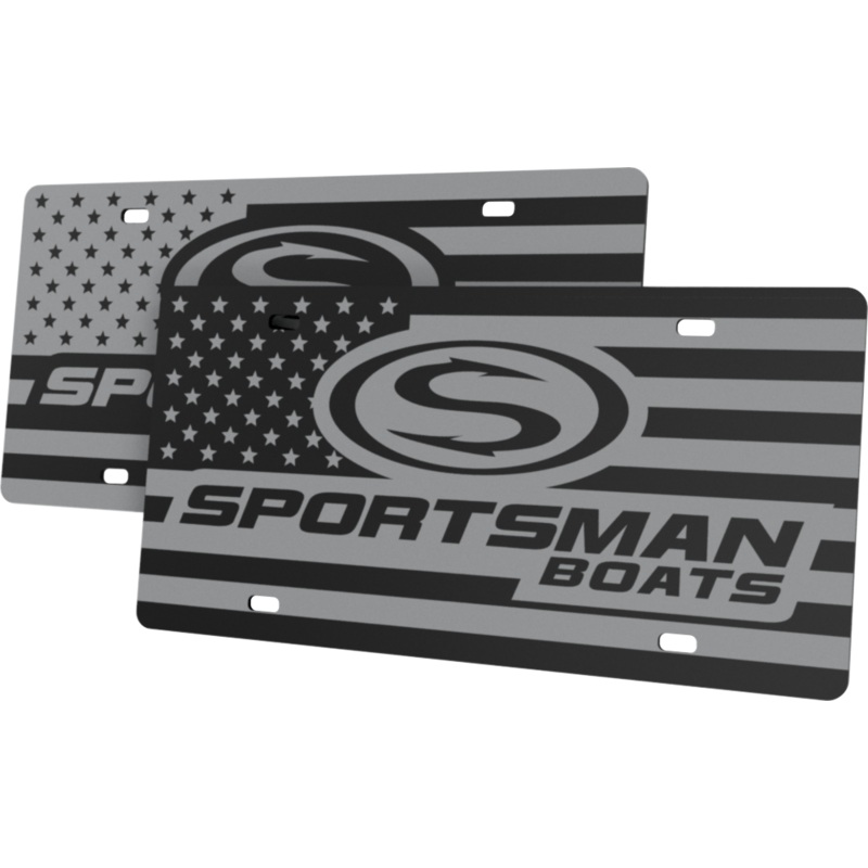 Will look incredibly great on your vehicle and boat trailer!This extremely high gloss black acrylic license plate is 1/8" thick and boasts a beautiful American Flag image behind the iconicSportsman logo.Get yours today!Available with either GlossySportsman